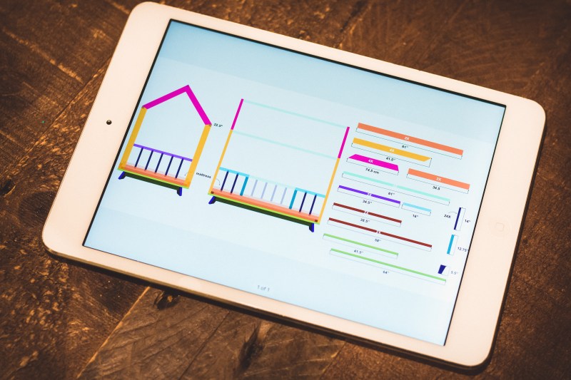 Next, I needed to mull over the technical aspect; I wanted this bed to be fairly easy to take apart (no more than 5 pieces) and I wanted minimally visible screws, just like my son’s bed. I went to the IKEA website, as is tradition, and chose the mattress I wanted and in about an hour, I had the design laid out to scale, with a shopping list and a cut list in hand!